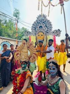 _{सोलापुरी माता पूजा : ढोल ताशे बाजे एवं काली की जीवंत झांकी के साथ निकली शोभा यात्रा}