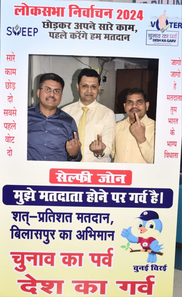 जिला पंचायत सीईओ एवं स्वीप के नोडल अधिकारी श्री आरपी चौहान ने सभी से 7 मई को अपने मताधिकार का अनिवार्य रूप से उपयोग करने की अपील की। अस्पतालों में सेल्फी पॉइंट बनाकर मतदाताओं को प्रोत्साहित किया जा रहा है। कार्यक्रम में सीएमएचओ डॉ. प्रभात श्रीवास्तव, डॉ. अनिल श्रीवास्तव, जिला पंचायत के परियोजना अधिकारी श्री ओम पाण्डेय, डीपीएम प्यूली मजूमदार, अपोलो अस्पताल के अधिकारी-कर्मचारी, मरीज और उनके परिजन बड़ी संख्या में मौजूद थे।