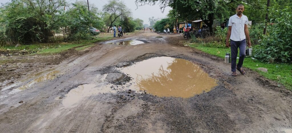 – बड़े बड़े गड्ढों को पूर्व मे सिर्फ किया गया था पाटने का काम।