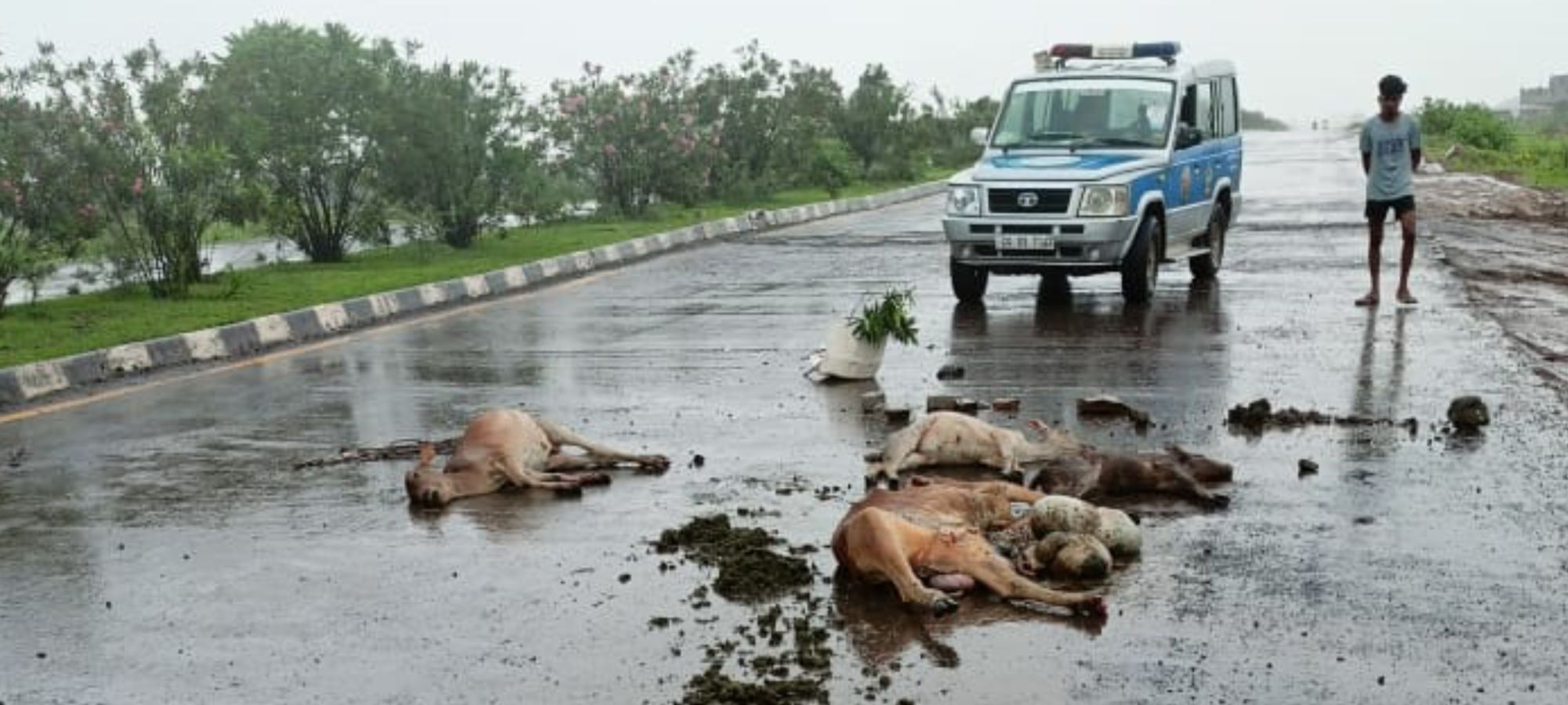 सुबह जानकारी मिलने पर तत्काल बल भेजी गई मृत मवेशियों के मालिकों द्वारा अब तक किसी भी प्रकार की मालिकाना हक संबंधित सुचना थाने मे नहीं दी गई है वही घटना करित वाहन सहित चालक की तालाश हेतु जांच जारी है।