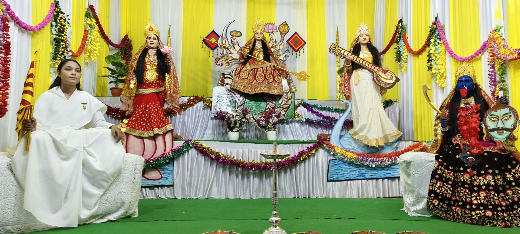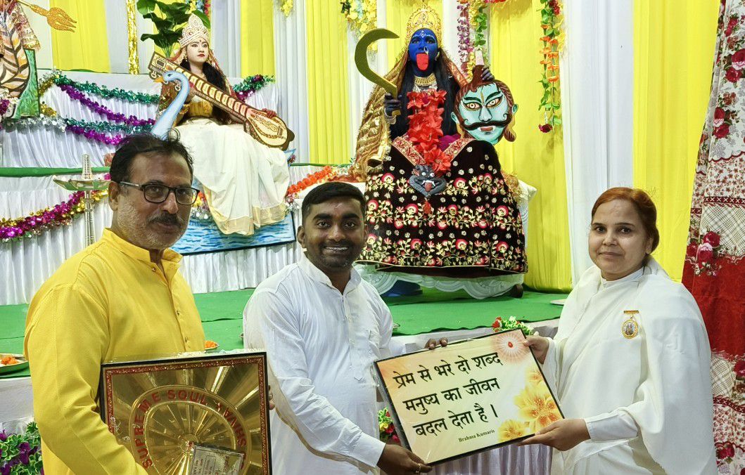 यह सन्देश मूर्ति रूप में विराजित चैतन्य देवियाँ दे रही है ज्ञात हो की योग मेडिटेशन के सतत अभ्यास द्वारा तन और मन की स्थिरता,एकाग्रता के कारण कन्याएं अचल और अडोल मूर्तियों के समान प्रतीत होती हैं। यह झांकी 11 अक्टूबर तक सर्व के नि:शुल्क दर्शनार्थ प्रतिदिन शाम को 7 बजे से रात्रि 10 बजे तक रहेगी झांकी के अंत में सभी को राजयोग मेडिटेशन के अभ्यास द्वारा बताया जा रहा है कि हमारे एक सकारात्मक विचार में सब कुछ बदलने की शक्ति है। इस चैतन्य देवी झांकी मे माँ दुर्गा की रूप मे ब्रह्माकुमारी प्रीति बहन,माँ सरस्वती के रूप में ब्रह्माकुमारी गरिमा बहन,माता लक्ष्मी के रूप में ब्रह्माकुमारी सविता,मां काली के रूप में ब्रह्माकुमारी रंजना व ब्रह्माकुमारी पूजा ब्रह्मकुमारी के रूप में सामिल है।