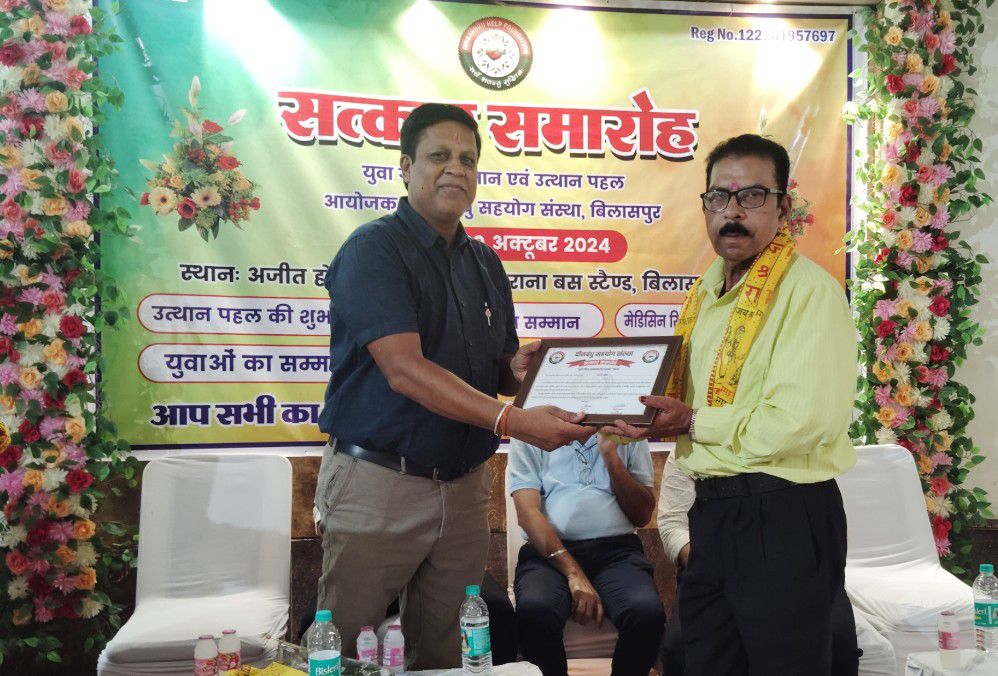 दीनबंधु सहयोग संस्था बिलासपुर के तत्वावधान में सत्कार समारोह दिनांक 20/10/24 को अजीत होटल तेलीपारा में आयोजित किया गया। इस कार्यक्रम मे मितानिनो, समाजसेवी संस्थानों, युवाओ का सम्मान के साथ साथ रोटी बैंक बिलासपुर का सम्मान सत्कार किया गया।