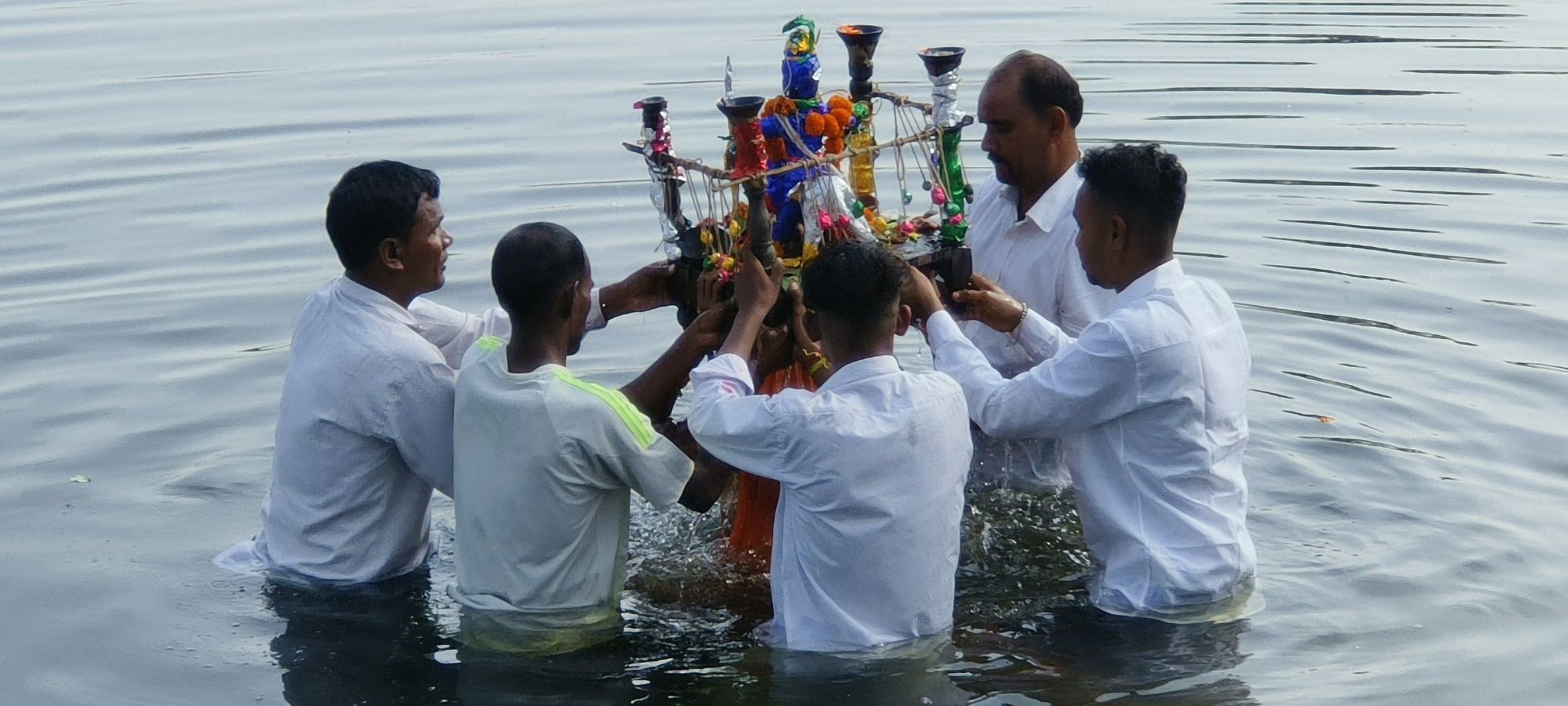 जिन परिवारो मे चलता है परम्परा वही उठाते है गौरा गौरी,तालाब मे डूबकर करते है विषर्जित।