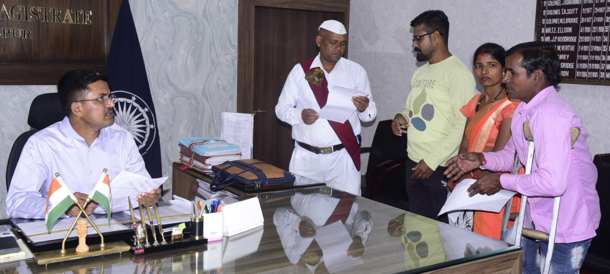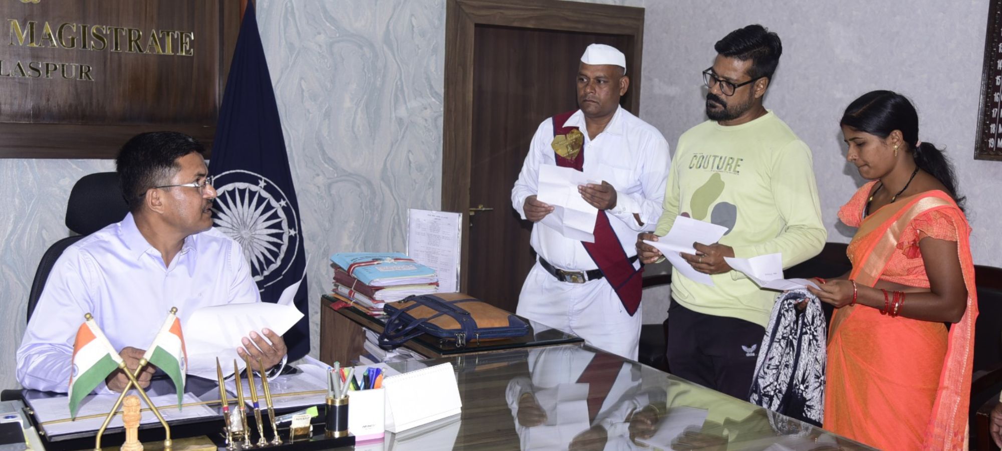 बिलासपुर ! कलेक्टर अवनीश शरण ने आज साप्ताहिक जनदर्शन में दूर-दराज से आये लोगों की समस्याएं सुनी। कलेक्टर ने सभी की समस्याओं को इत्मीनान से सुना और निराकरण योग्य आवेदनों का मौके पर ही निराकरण किया। कलेक्टर ने संबंधित अधिकारियों को आवेदन भेजते हुए जल्द निराकरण करने के निर्देश दिए।