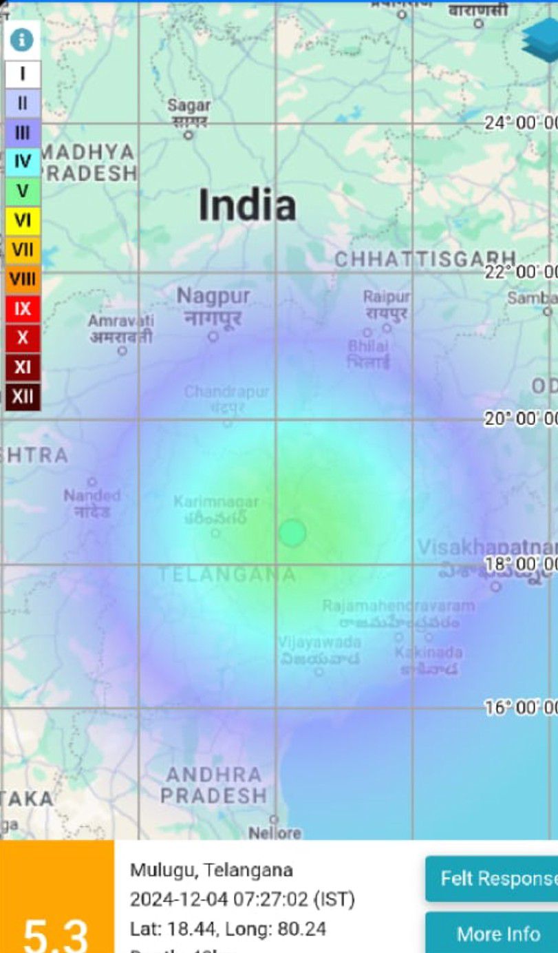 जानकारी के मुताबिक सुबह 7:28 बजे के आसपास लोगों को ये महसूस किया कि धरती में कंपन हो रही है। जिसके बाद लोग अपने अपने घरों से बाहर निकल गए। जानकारी के मुताबिक भूकंप का केंद्र विजयवाड़ा करीमनगर के पास मूलगू जिले में था।