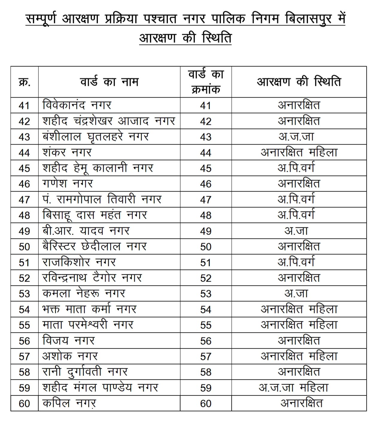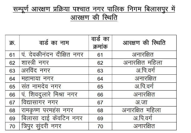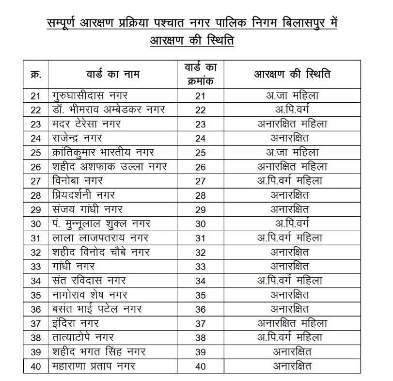 बिलासपुर बिलासपुर नगर निगम के 70 वार्डो का हुआ आरक्षण KANHAIYA KAUSHIK/ EDITOR & CHIF 19 December 2024 1 min read राजधानी रायपुर ने बाद नगरीय निकाय हेतु न्यायधानी बिलासपुर नगर पालिका निगम के 70 वार्डो का आरक्षण आज तय हो गया जो इस प्रकार है KANHAIYA KAUSHIK/ EDITOR & CHIF Continue Reading Previous: बंदर ने दिया धक्का छत से गिरा 56 वर्षीय ग्रामीण हुई मौतNext: कुख्यात अपराधी रंजन गर्ग के खिलाफ़ शासकीय भूमि मे अतिक्रमण पर प्रशासन की ताबड़तोड़ कार्रवाई Leave a Reply Cancel replyYour email address will not be published. Required fields are marked *Comment * Name * Email * Website Save my name, email, and website in this browser for the next time I comment. Related Stories सिरगिट्टी क्षेत्र मे नेटवर्किंग मार्केटिंग का जाल ठगी के शिकार युवतियों ने थाने मे लिखाई रिपोर्ट 1 min read बिलासपुर सिरगिट्टी क्षेत्र मे नेटवर्किंग मार्केटिंग का जाल ठगी के शिकार युवतियों ने थाने मे लिखाई रिपोर्ट 13 February 2026 दुर्घटना – यमराज बनकर दौड़ी पिकप एक परिवार के तीन लोगो की मौत 1 min read बिलासपुर दुर्घटना – यमराज बनकर दौड़ी पिकप एक परिवार के तीन लोगो की मौत 6 February 2026 पहले बिलासपुर मे तो अब कोरबा मे हुआ हत्या,युवक ने प्रेमिका का रेता गला खुद भी मौत के आगोश मे समाया 1 min read बिलासपुर पहले बिलासपुर मे तो अब कोरबा मे हुआ हत्या,युवक ने प्रेमिका का रेता गला खुद भी मौत के आगोश मे समाया 4 February 2026