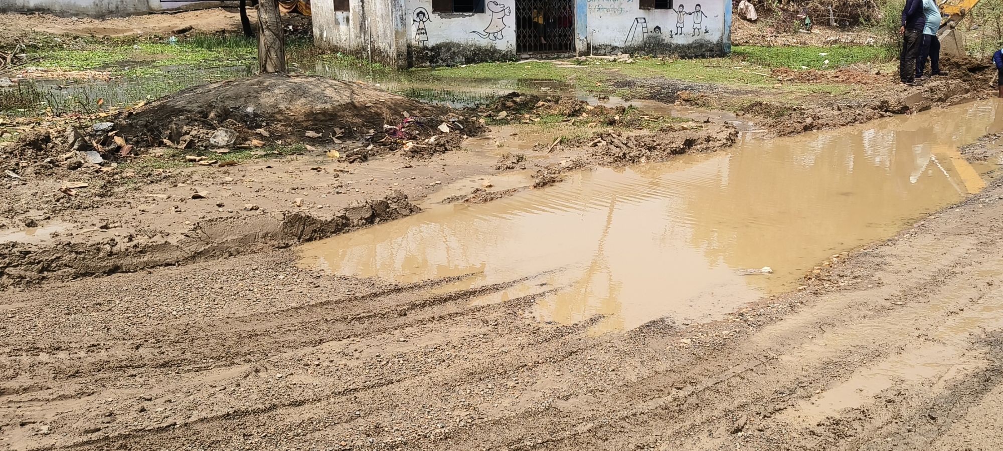 मिट्टी खुदाई करके भारी वाहन आँगन बाड़ी के सामने से ही निकाला जा रहा है जिसके चलते पाईप लाइन पूरी तरह छतिग्रस्त हो चुकी है। नाली व उस पानी के लाईन से लगातार पानी के एक स्थान पर जमा होने से सड़क पूरी तरह कीचड मे तब्दील हो चुकी है। जिस वजह से एक तरफ आंगनबाडी तक बच्चे नहीं पहुंच पा रहें है वही दूसरी तरफ वहाँ का पाईप लाईन तोड़ दिया गया है जिससे कुछ घरो के साथ ही आंगनबाड़ी केंद्र मे पानी नहीं पहुंच पा रही है ।