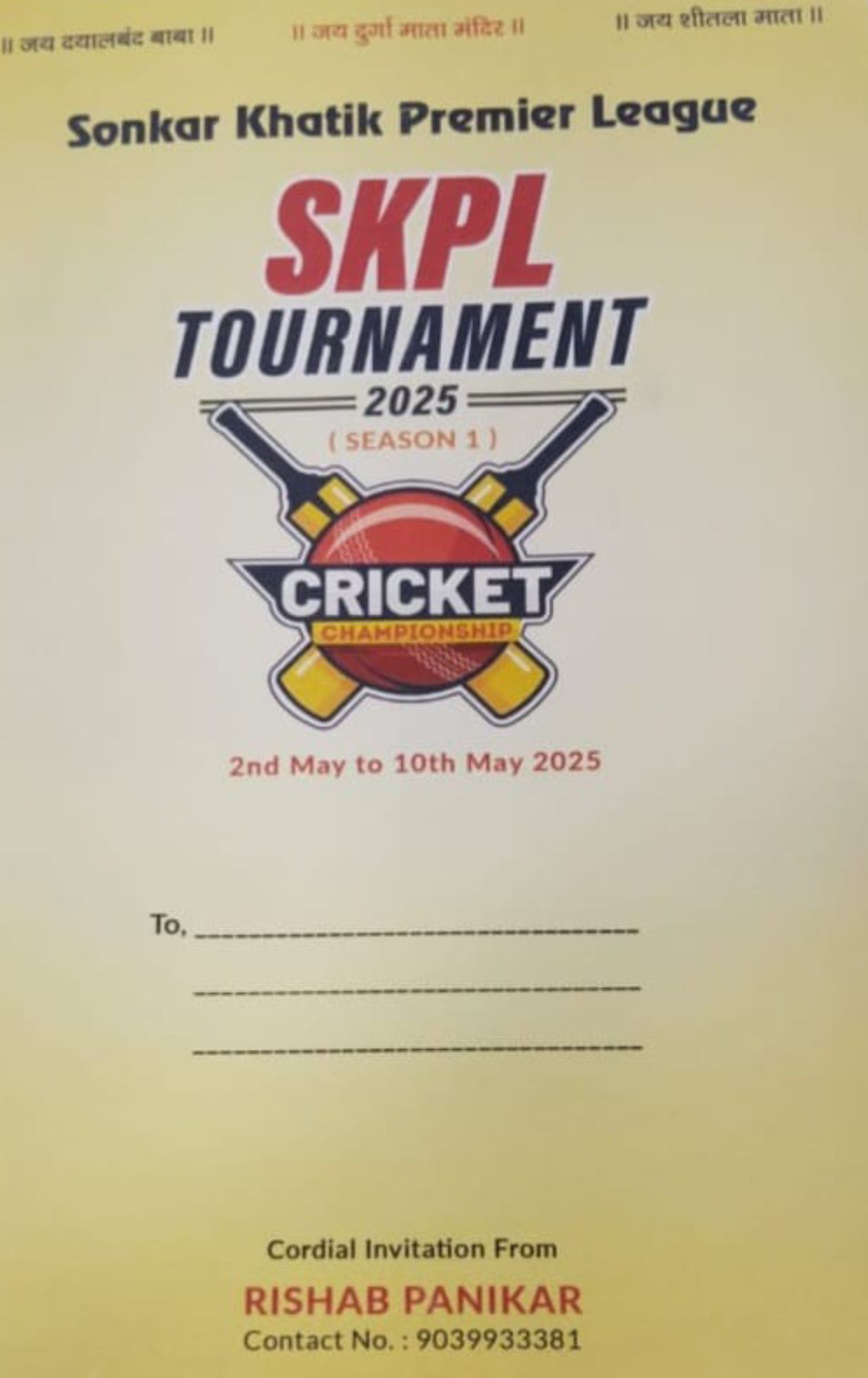 बिलासपुर प्रेस क्लब में पत्रकारों से चर्चा करते हुए आयोजन समिति के आशीष गोयल,ऋषभ पानीकर सहित ने बताया कि एसकेपीएल मतलब सोनकर खटीक प्रीमियर लीग नाम के इस मैच का आयोजन 2 से लेकर 10 मई तक किया जा रहा है। इसमें बिलासपुर रायपुर,दुर्ग भिलाई और खड़गपुर समेत अन्य कुछ राज्यों से 12