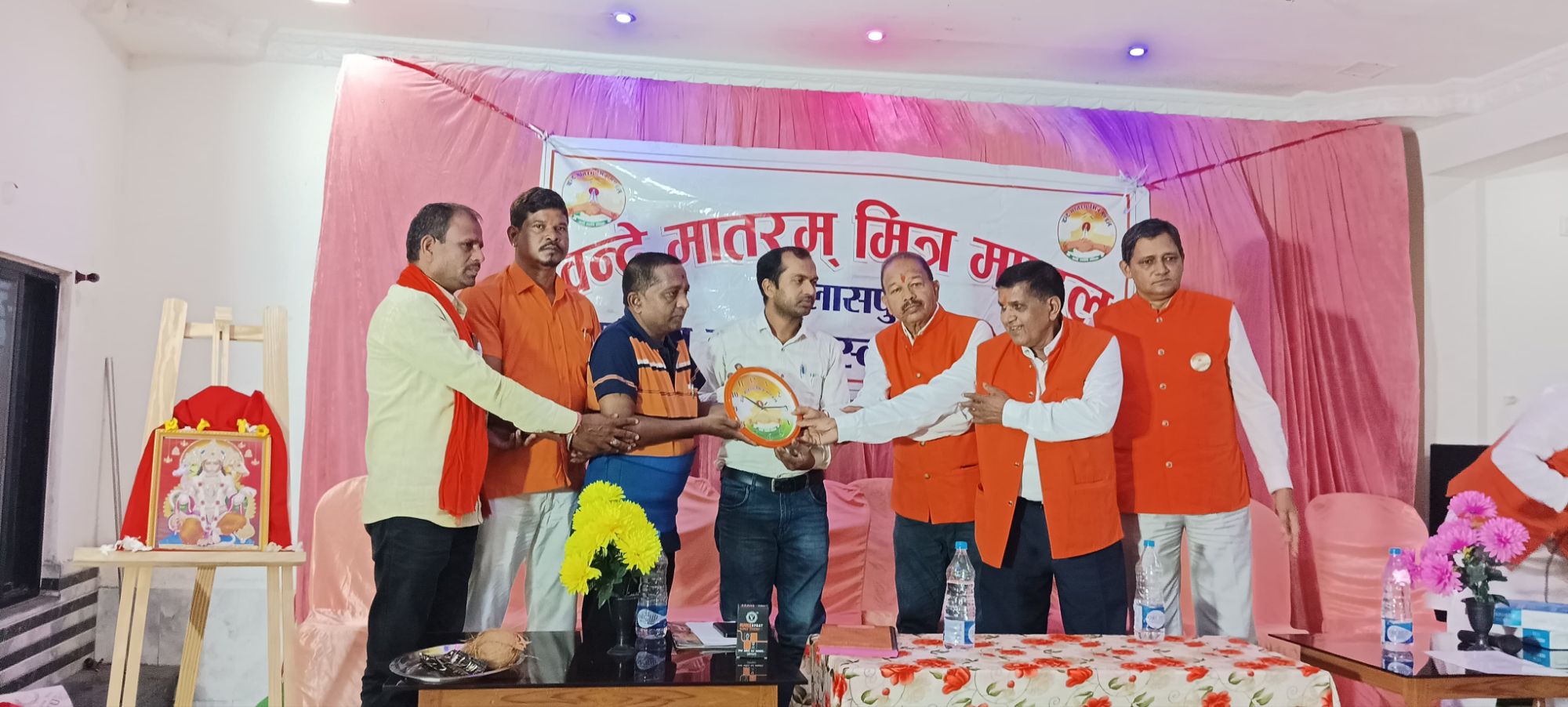 वेदों का ज्ञान देना होगा। इस कड़ी में उन्होंने कहा कि मैं अन्नपूर्णा कॉलोनी में अपने निवास में हर वर्ग के लिए खासकर बच्चों और युवा वर्ग के लिए वेद पुराणों का ज्ञान की कक्षा संचालित करता हूं जिसे भी जरूरत हो वह मुझसे संपर्क कर सकते हैं। मैं सदैव सहयोग के लिए तत्पर रहूंगा। और मातृ भाषा के उपयोग के अधिक से अधिक उपयोग पर जोर दिया। अंत में जयप्रकाश लाल ने अपने अध्यक्षीय उद्बोधन में प्रदेश अध्यक्ष महेंद्र जैन के विजन, त्याग मेहनत का परिणाम है कि वंदेमातरम मित्र मंडल आज अपने 204थे बैठक का संचालन कर रहा है। मनुस्मृति का उल्लेख करते हुए जात-पात को खत्म करते हुए सबको एक सूत्र में बांधने का आव्हान किया।