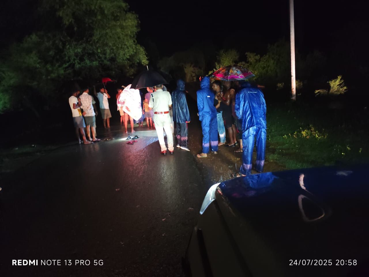 उसमे 4 बड़े व 5 बच्चे सहित कुल 9 लोग थे सवार वह कार पानी के तेज बहाव में कार बह गई सभी लोग लगभग 60 फिट दूर बह गए थे किसी तरह सभी लोगो ने तैरकर बाहर आये साथ ही 4 बच्चों को बचा लिए लेकिन मोहन का 3 वर्षीय बेटे का हाथ छूट गया और वह कार सहित तेज बहाव में बह गया सूचना के बाद टीआई गोपाल सतपथी पुलिस टीम व 12 की टीम के साथ मौके पर पहुचे लेकिन रात के अंधेरे में ना ही मासूम तेजस का पता चल पाया और नाही कार का पता चल पाया हालांकि पुलिस व कुछ युवा ग्रामीणों ने नाला में तैरकर ढूंढने की कोशिश की लेकिन पता नही चल सका सुबह एसडीआरएफ की टीम पहुचकर बच्चे व कार को ढूढेंगे पुलिस ने उम्मीद जताई कि पूल से 800 सौ मीटर दूर झलमला सेलर एनीकट में मिलने की संभावना है।