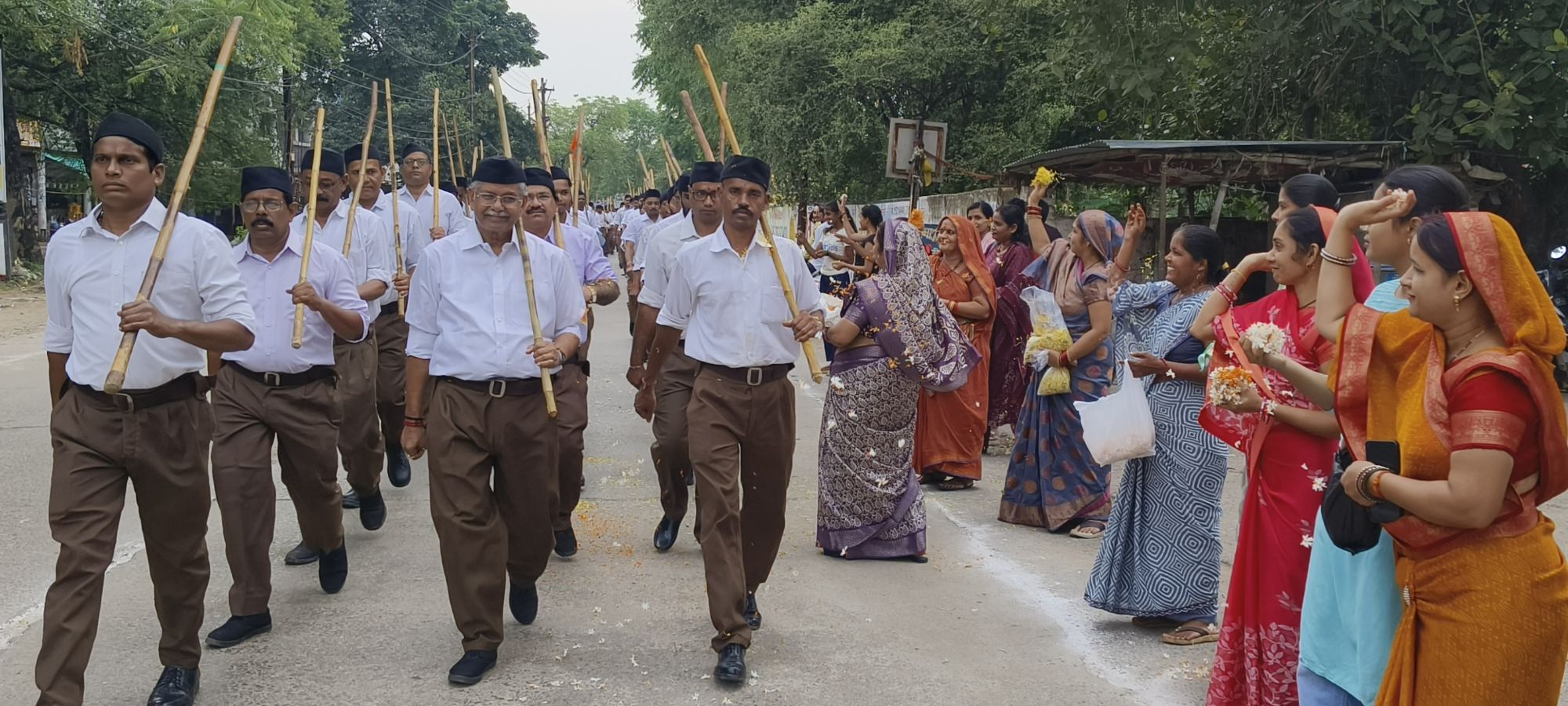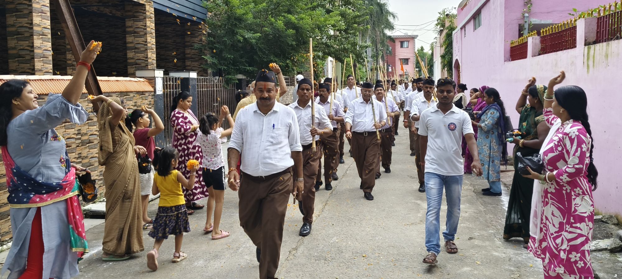 (संघ कार्य केवल संगठनात्मक विस्तार नहीं बल्कि एक साधना है कौशिक) उक्त पथ संचलन मे बिल्हा विधायक धरम लाल कौशिक भी हाथो मे दंड लिए कदम से कदम मिलाकर चल रहें थे। उन्होंने कहा की संघ ने व्यक्तित्व निर्माण,समाज निर्माण और राष्ट्र निर्माण के लिए शाखा से द्वार तक,खेत से नगर तक कार्य किया.संघ कार्य केवल संगठनात्मक विस्तार नहीं बल्कि एक साधना है। मुख्य वक्ता डॉ. प्रफुल शर्मा ने कहा की समाज और राष्ट्रजीवन के विभिन्न आयामों को छुआ है समाज को एकरूपता एवं एक जुटता देने समाज में व्याप्त समस्याओं का समाधान करना ही राष्ट्रीय स्वयं सेवक संघ के स्वयं सेवकों का मूल कर्तव्य है।