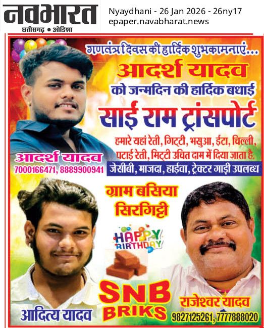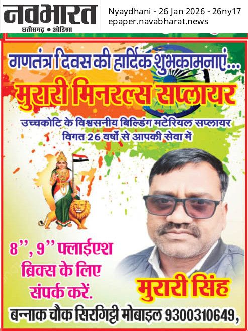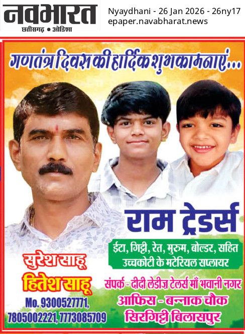 शहर के प्रसिद्ध सुदर्शन डेवलपर के इंद्रजीत सिंह सिद्धू,धर्मेंद्र वर्मा,सोनू सोनवानी,सजीत प्रजापति सहित स्टाफ ने चकरभाठा स्थित विकसित कॉलोनी इंद्रप्रस्थ में तिरंगा झंडा फहराया। वही मारुति एंटरप्राइजेस प्रमुख रवि पासवान के द्वारा अपने कार्यालय, सिरगिट्टी के सपना जेसीबी बिल्डिंग मटेरियल सप्लायर के प्रमुख बाली श्रीवास,दीपक श्रीवास राजेश श्रीवास,आनंद श्रीवास। मुरारी मिनरल्स बिल्डिंग मटेरियल सप्लायर के प्रमुख मुरारी सिंह,श्री राम बिल्डिंग मटेरियल सप्लायर सुरेश साहु, हितेश साहू,ओम साईं राम ट्रांसपोर्ट के राजेश्वर यादव,आदित्य आदर्श यादव ने अपने कार्यालय मे ध्वजारोहण किए।