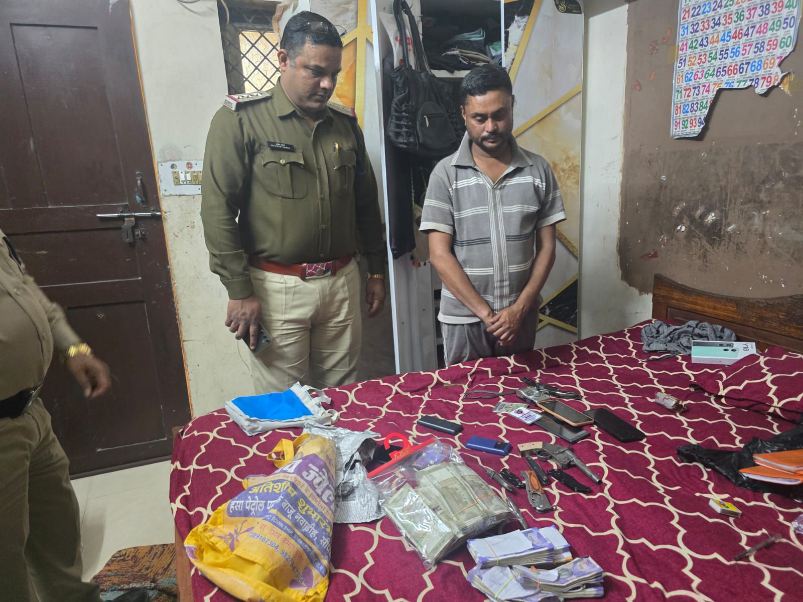 बिलासपुर। शहर के चर्चित महलक्ष्मी ज्वेलर्स लूट कांड का पुलिस ने सनसनीखेज खुलासा करते हुए अंतरराज्यीय गिरोह के 7 आरोपियों को गिरफ्तार किया है। आरोपियों के कब्जे से 5 लाख 33 हजार रुपए नकद, हथियार, कारतूस, धारदार चाकू, 6 मोबाइल और 3 चारपहिया वाहन बरामद किए गए हैं। पुलिस जांच में सामने आया है कि गिरोह ने प्रॉपर्टी विवाद के चलते भाजपा नेता और पार्षद बंधु मौर्य की हत्या की साजिश रची थी और लूट की कई वारदातों की योजना बनाई थी।