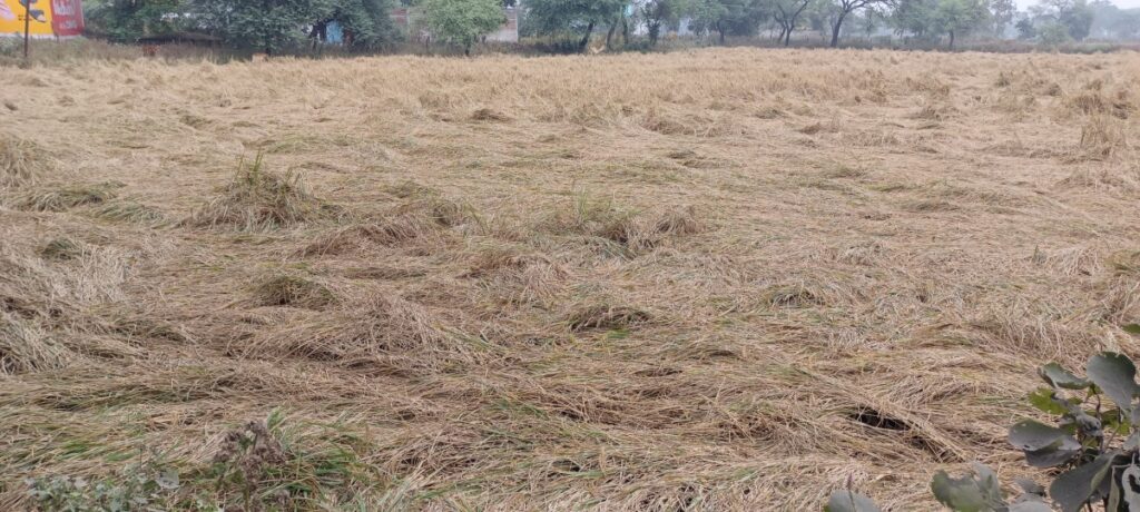 (कई किसानों के खेतो में पड़े है कट कर धान बारिश से भींग गए )