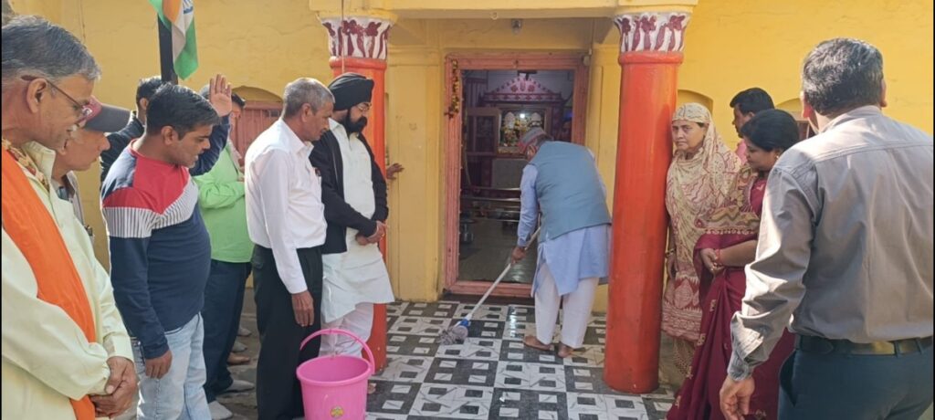देशभर में 14 जनवरी से 22 जनवरी तक स्वच्छता अभियान चलाया जाएगा। इसके तहत देशभर के मंदिरों और धार्मिक स्थलों की सफाई की जाएगी। उन्होंने कहा कि हमारे मंदिर हमारी शक्ति है हमारा भारत की संस्कृत धरोहर है मंदिरों को स्वच्छ रखना हम सब की जिम्मेदारी है प्रत्येक नागरिक का कर्तव्य है प्रधानमंत्री नरेंद्र मोदी ने आह्वान के साथ अब संपूर्ण नगर में हर मंदिर में स्वच्छता अभियान चलाकर उन्हें स्वच्छ और सुंदर बनाया जाएगा। इस अवसर पर प्रदेश उपाध्यक्ष श्री भूपेंद्र सवन्नी जी एवं समस्त पदाधिकारी, कार्यकर्ता एवं आमजनों शामिल हुए।
