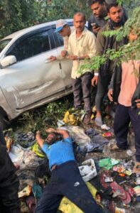 – कार के निचे दबा था युवक कड़ी मशक्कत के बाद निकाला गया।